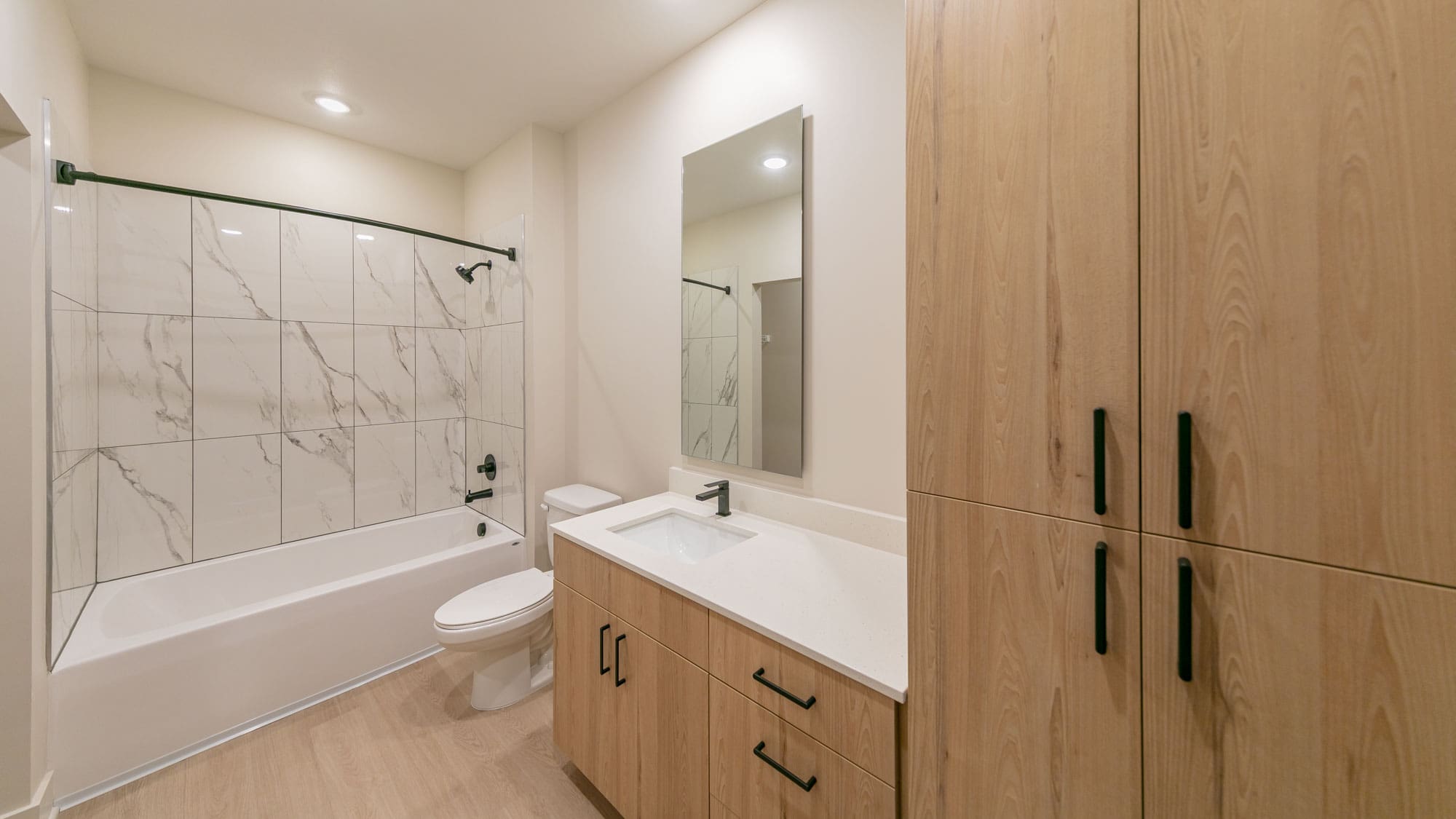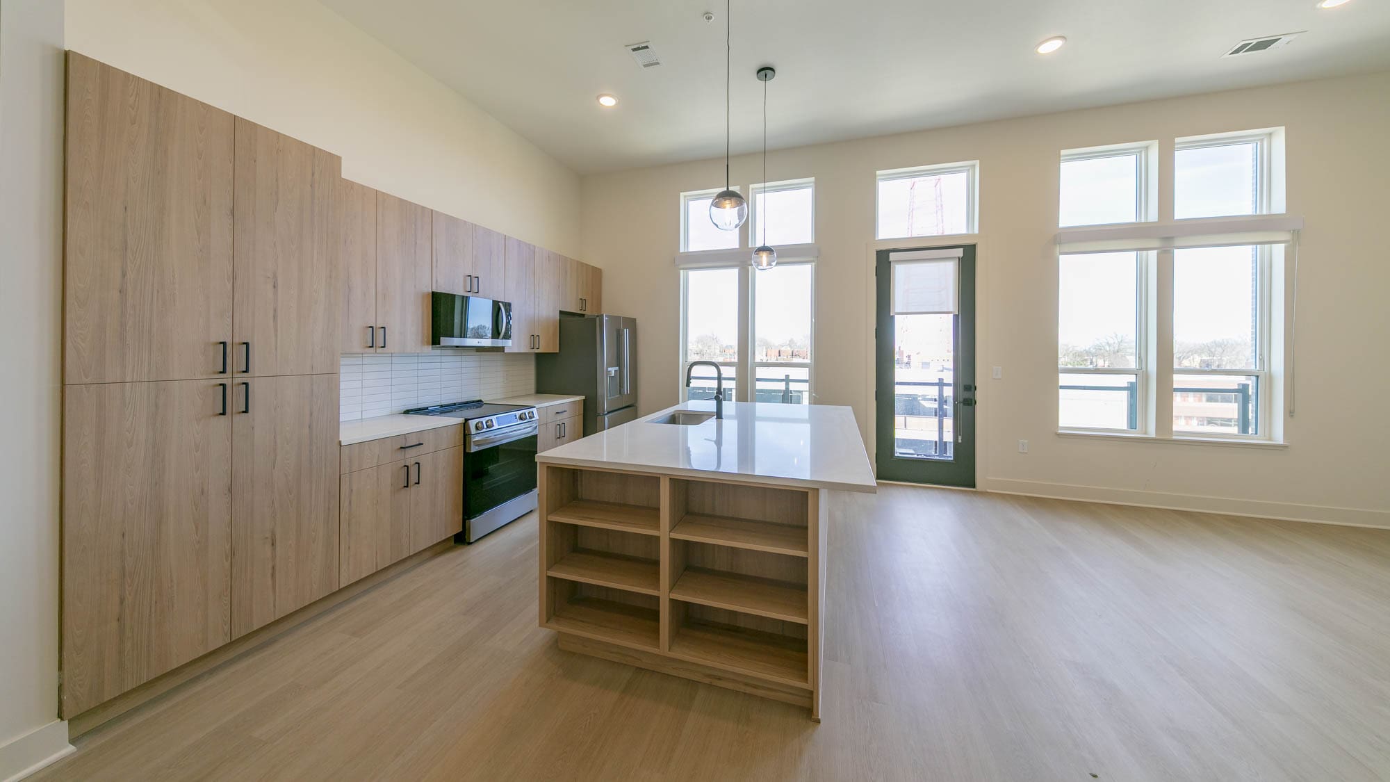 ArriveKC will feature 371 luxury apartments in a mix of studio, 1 bedroom and 2 bedroom units, plus 2 guest suites. Interior unit finishes will include quartz countertops, stainless appliances, custom cabinetry, tiled backsplashes and showers, luxury vinyl plank flooring, carpeted bedrooms, plus modern lighting and hardware.