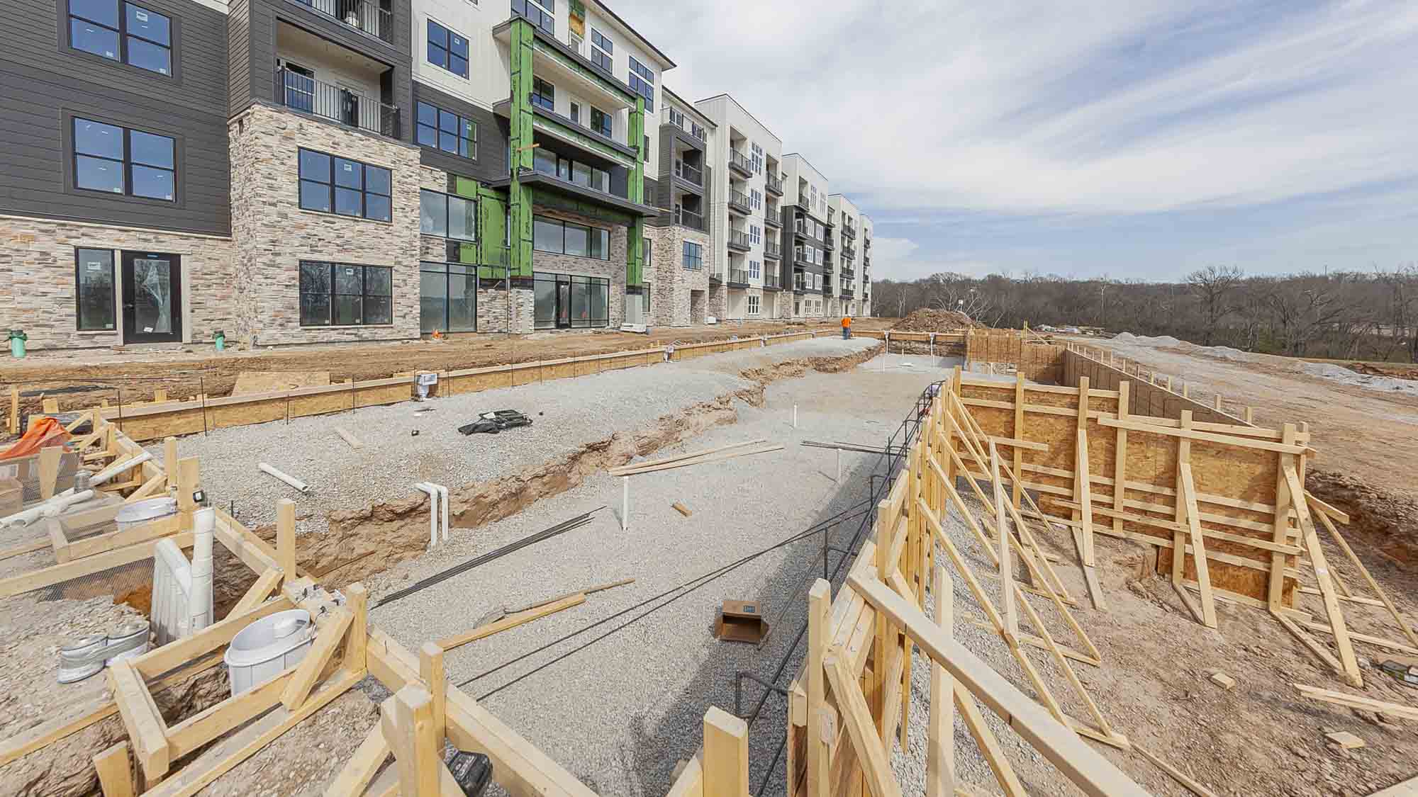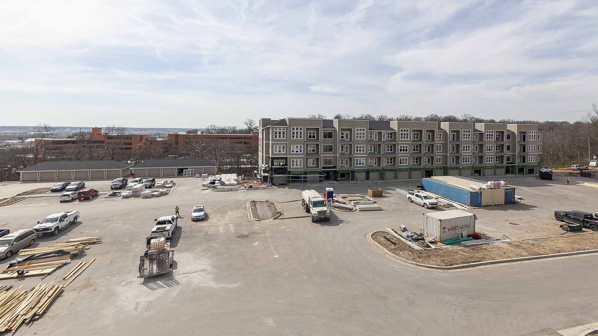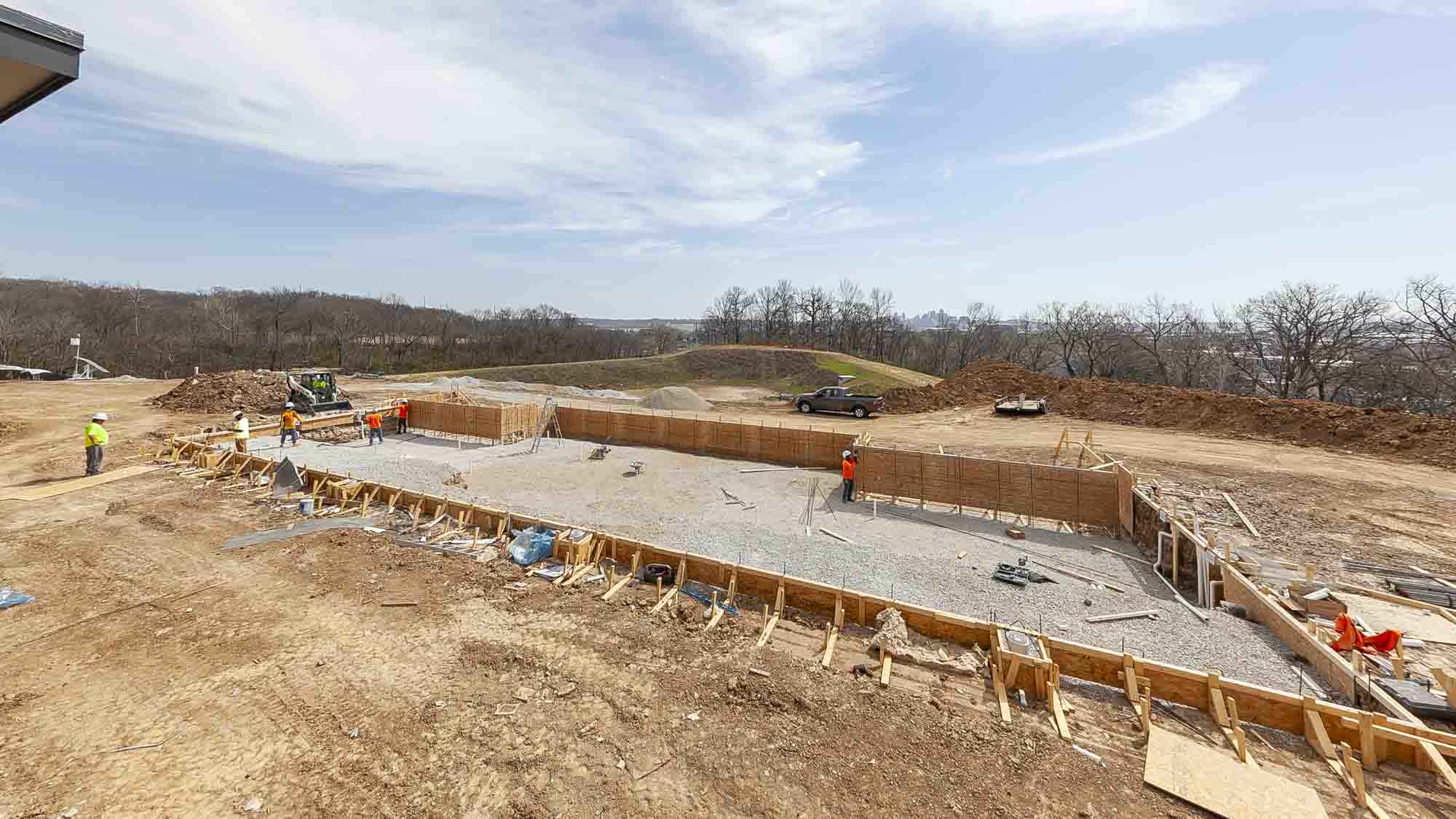 Working with Rosemann & Associates and SitePoint, Ascent distinguishes itself through its innovative design and construction methodology. With deep aggregate piers and tall modular block retaining walls, Ascent is perched above its surroundings, resulting in a wonderful view of North Kansas City and the downtown Kansas City skyline.