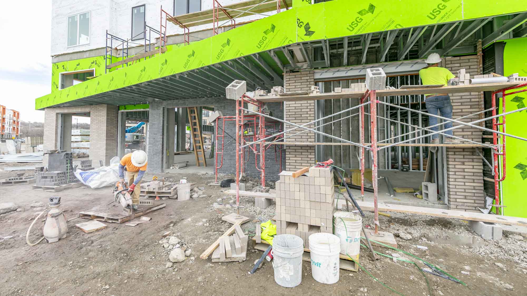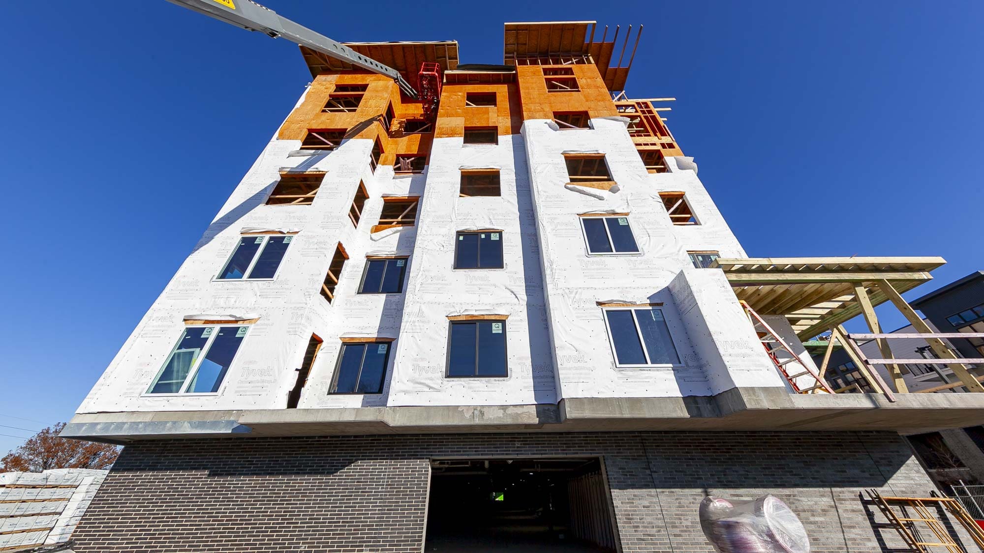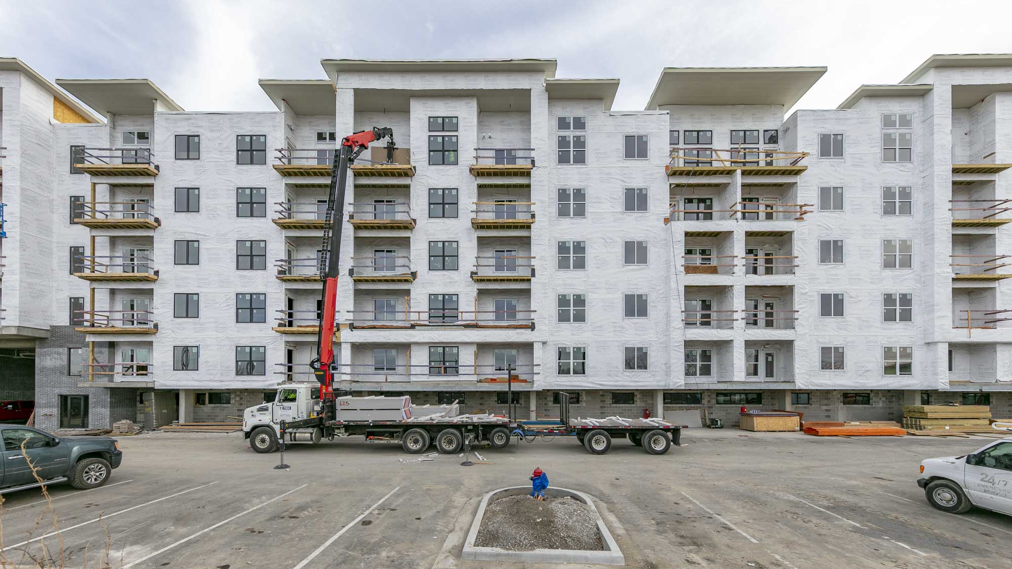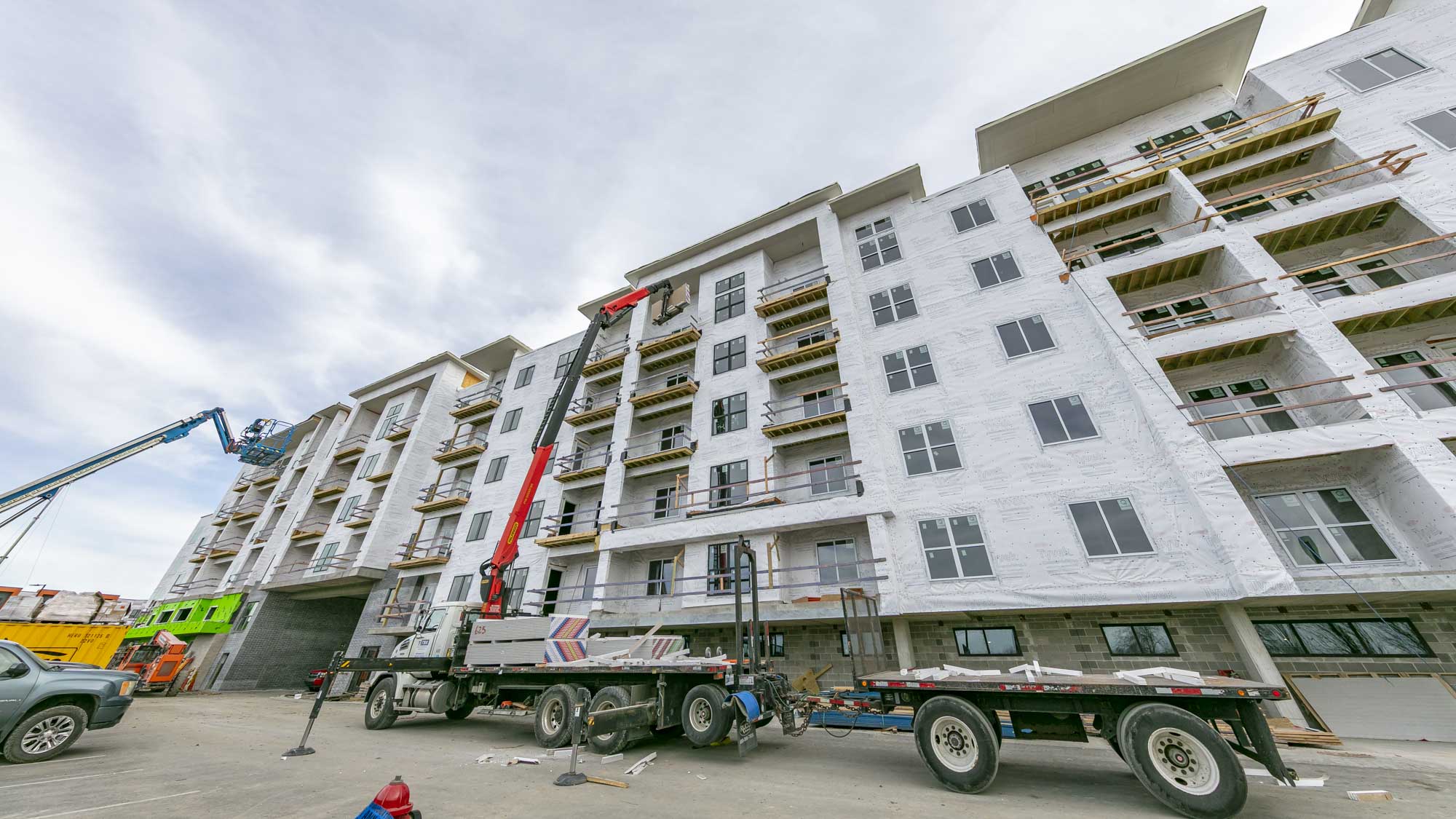 The West portion of the building houses a 77-space parking garage under a podium deck, while the East side features a 2-story Clubhouse and retail space under a separate podium deck. The 2nd through 6th floors consist of (153) wood-framed luxury units built using Type III construction. Given the soils challenges presented by the building’s proximity to the Missouri River, the building is supported on 40-foot deep rigid inclusions.