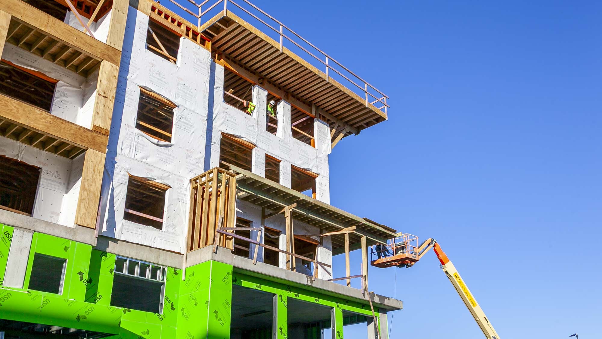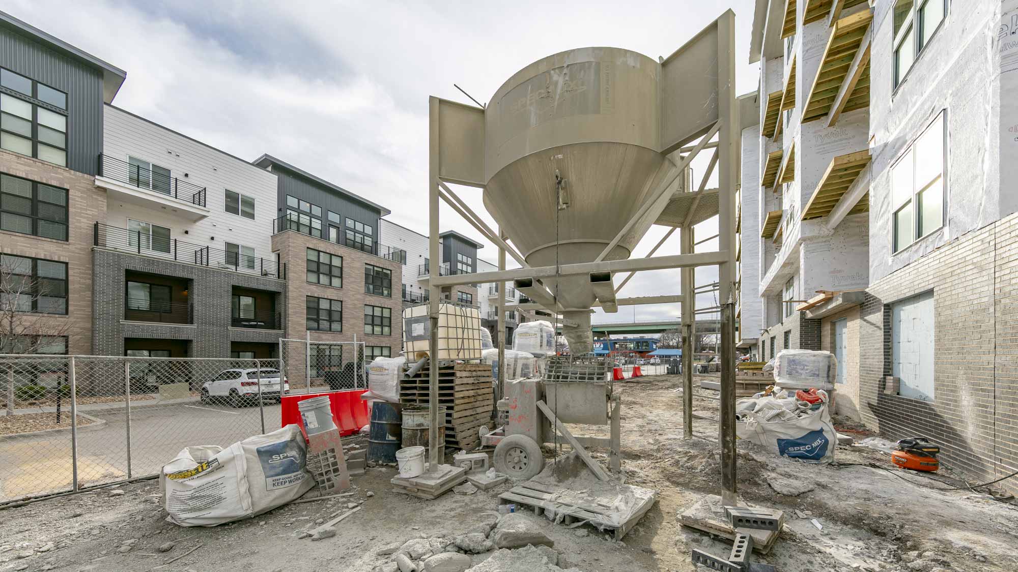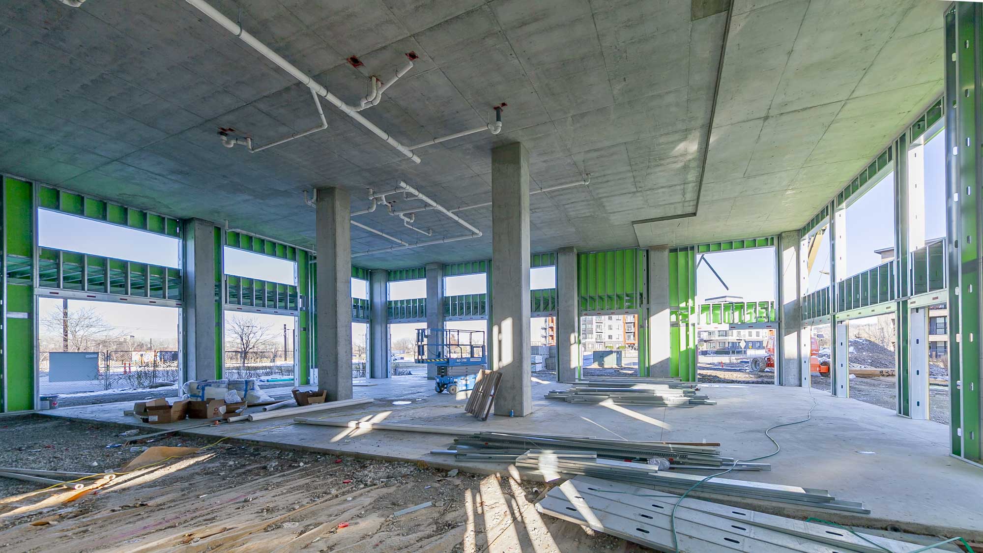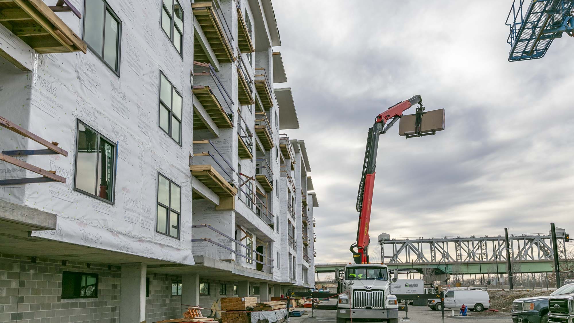 The West portion of the building houses a 77-space parking garage under a podium deck, while the East side features a 2-story Clubhouse and retail space under a separate podium deck. The 2nd through 6th floors consist of (153) wood-framed luxury units built using Type III construction. Given the soils challenges presented by the building’s proximity to the Missouri River, the building is supported on 40-foot deep rigid inclusions.