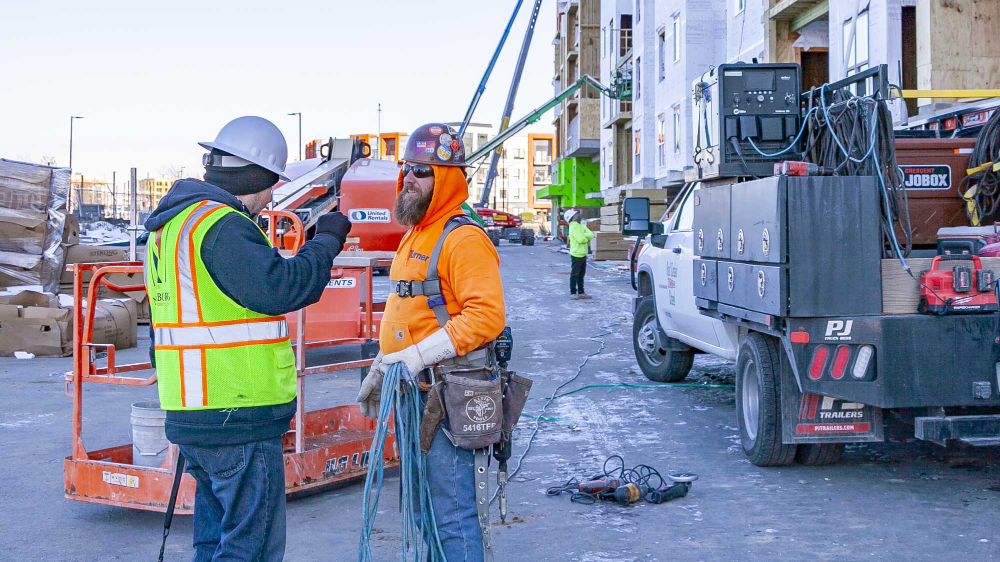 Apartment interior finishes will include custom cabinetry, stainless appliances, tiled backsplashes, luxury vinyl plank flooring, carpeted bedrooms, tile shower & tub surrounds, plus modern lighting and hardware. The building’s exterior cladding of brick, fiber cement siding, and metal panel siding will match Phase I.