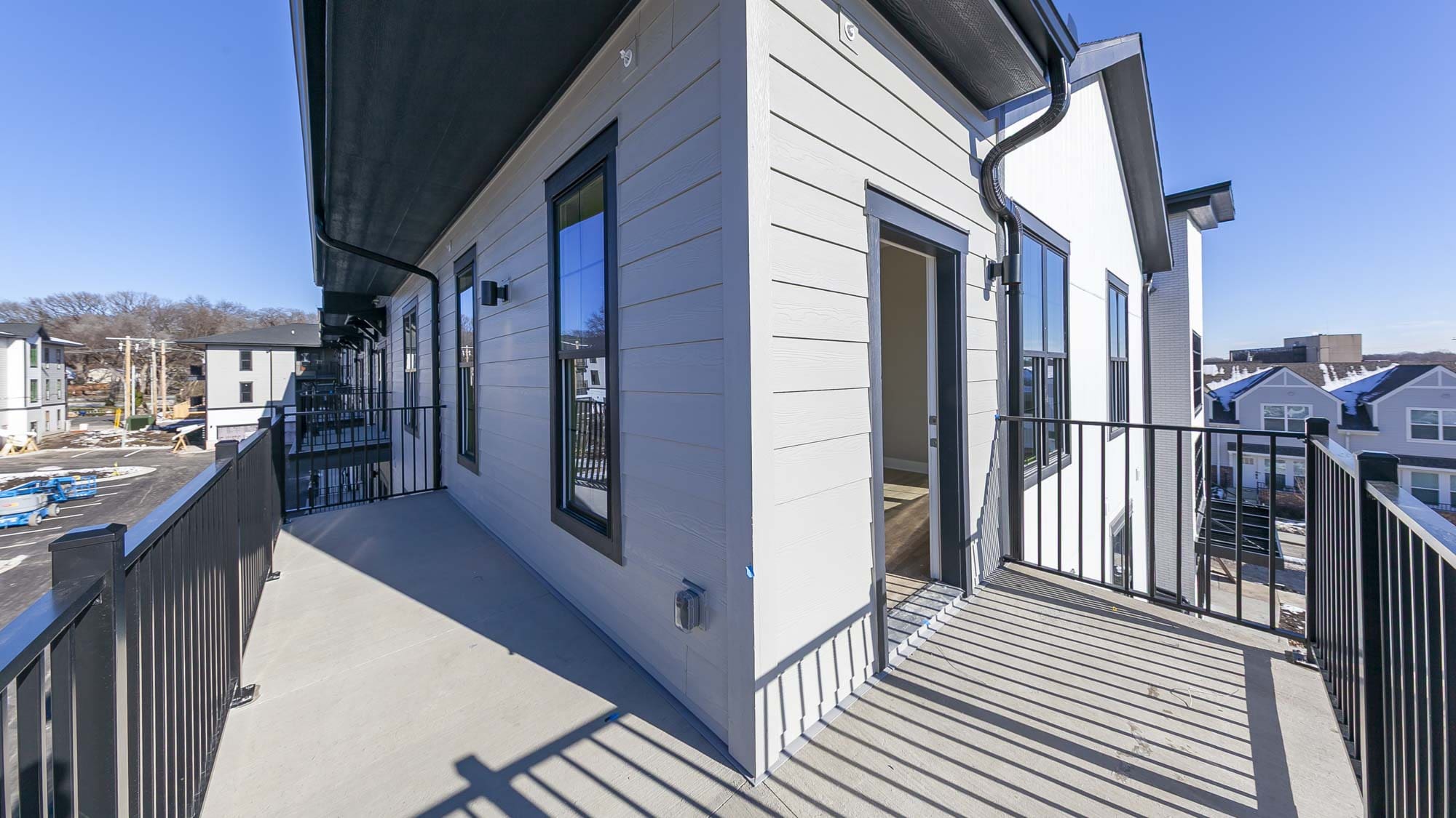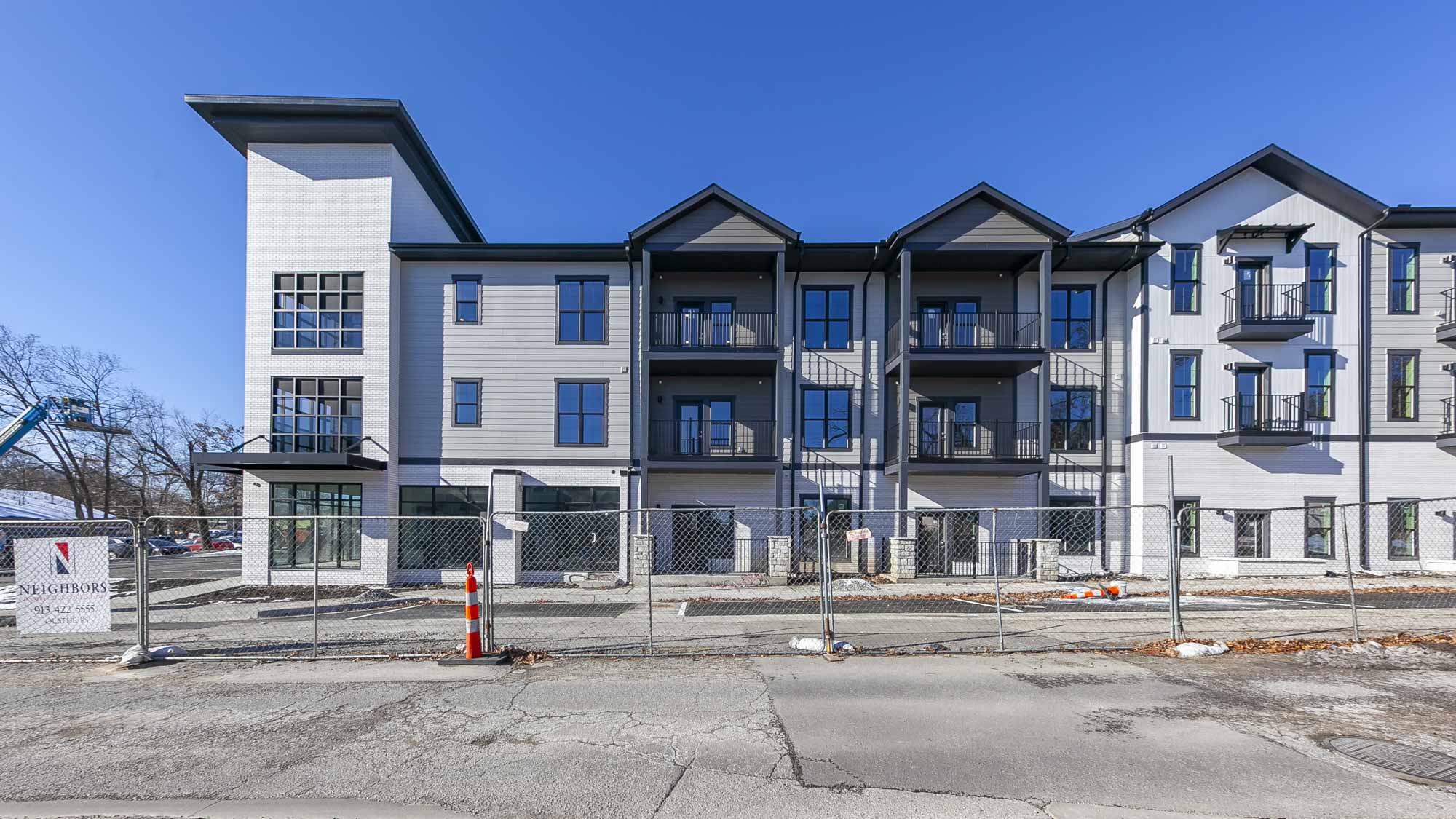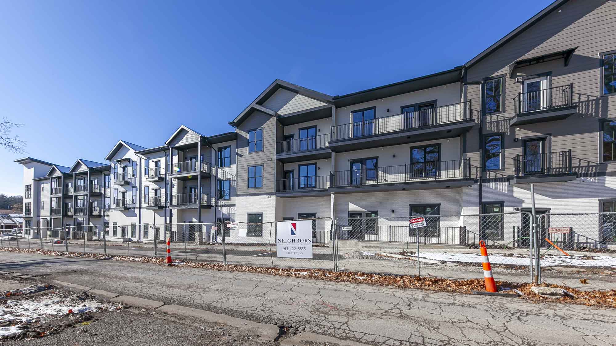 Mission Flats is a new multifamily development located in Mission, Kansas near Johnson Drive & Nall Avenue. The 89,795 sq. ft. project features 2 buildings with 77 units in a mix of studios (10), 1 bedrooms (53), 2 bedrooms (12), plus 2 ADA units and 25 attached garages.
